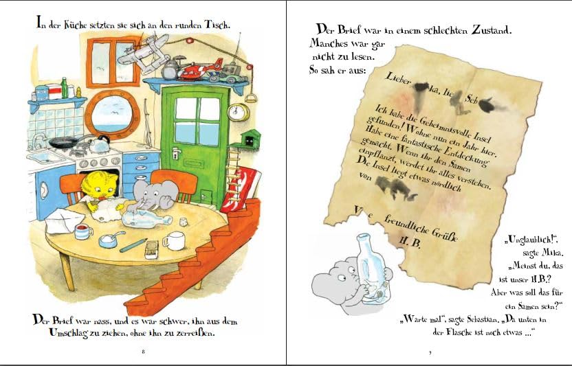 Nur wegbewegen lässt sich die Birne nicht - so schwer, wie sie ist. Auch Professor Glykose befasst sich mit der Sache und kurzerhand wird beschlossen, die Frucht auszuhöhlen und nach und nach abzutransportieren. Doch durch ein Missgeschick setzt sich der Anhänger, auf den die Freunde die ausgehöhlte Birne gehievt haben, in Bewegung und rumpelt mit viel Getöse den Berg hinab. Mit einem Riesenplatsch landet sie im Meer! Dort treibt die Birne samt Mika, Sebastian und Professor Glykose an Bord einer abenteuerlichen Reise entgegen ...