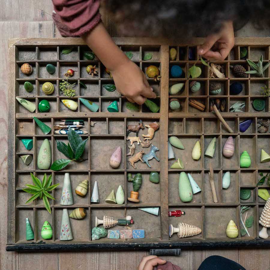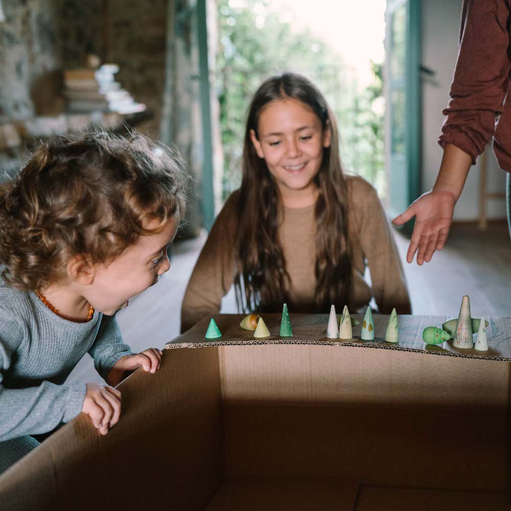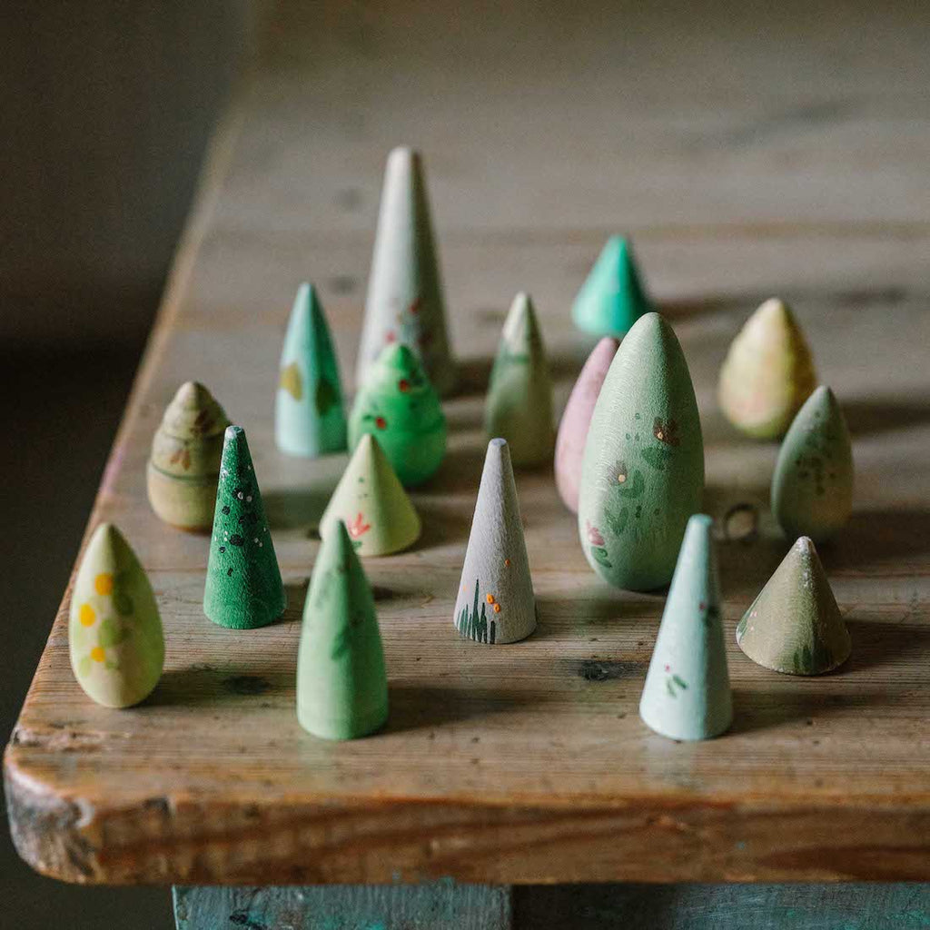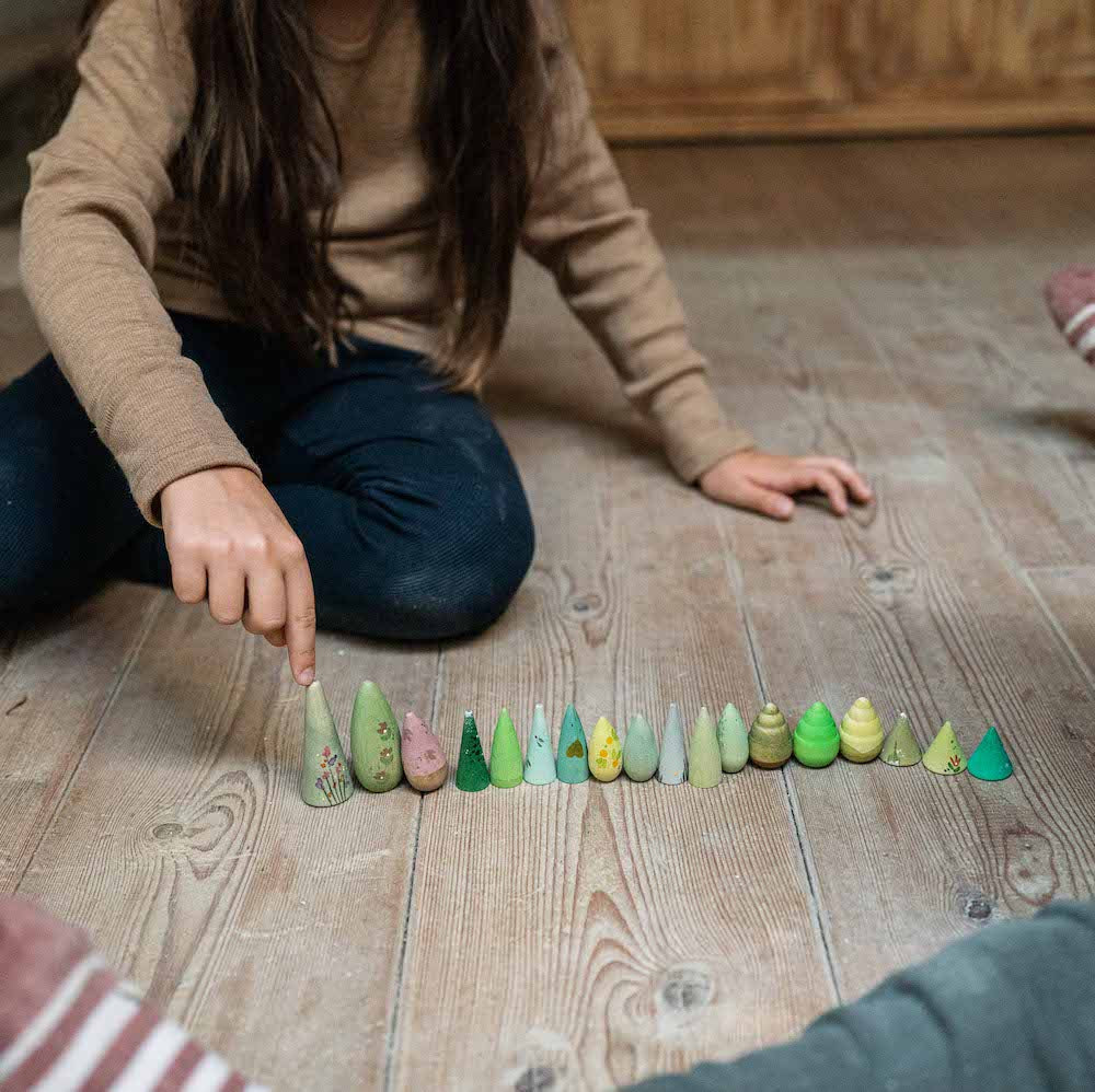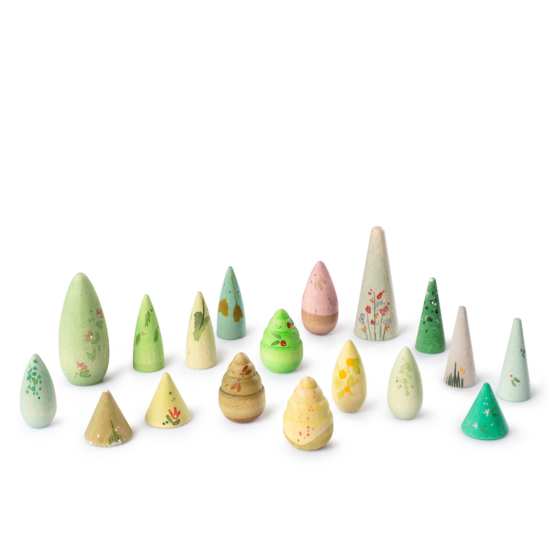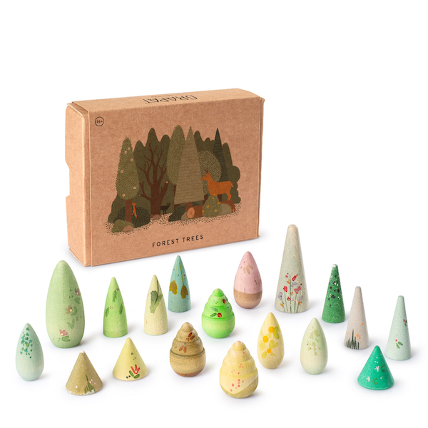 Die liebevoll gestaltete Spielfiguren-Sammlung „Forest Tree“ von GRAPAT bringt die Farben und Formen eines kleinen Waldes ins Kinderzimmer und lädt zu fantasievollen Spielwelten ein. Die sorgfältig gestalteten Holzelemente erinnern an verschiedene Baumformen und regen Kinder dazu an, eigene Waldlandschaften, Naturgeschichten oder kleine Tier- und Abenteuerwelten entstehen zu lassen. Wie bei allen Grapat Spielmaterialien bleibt die Gestaltung bewusst offen gehalten, sodass die Figuren immer wieder neue Bedeutungen annehmen können und der Fantasie der Kinder keine Grenzen gesetzt sind.
