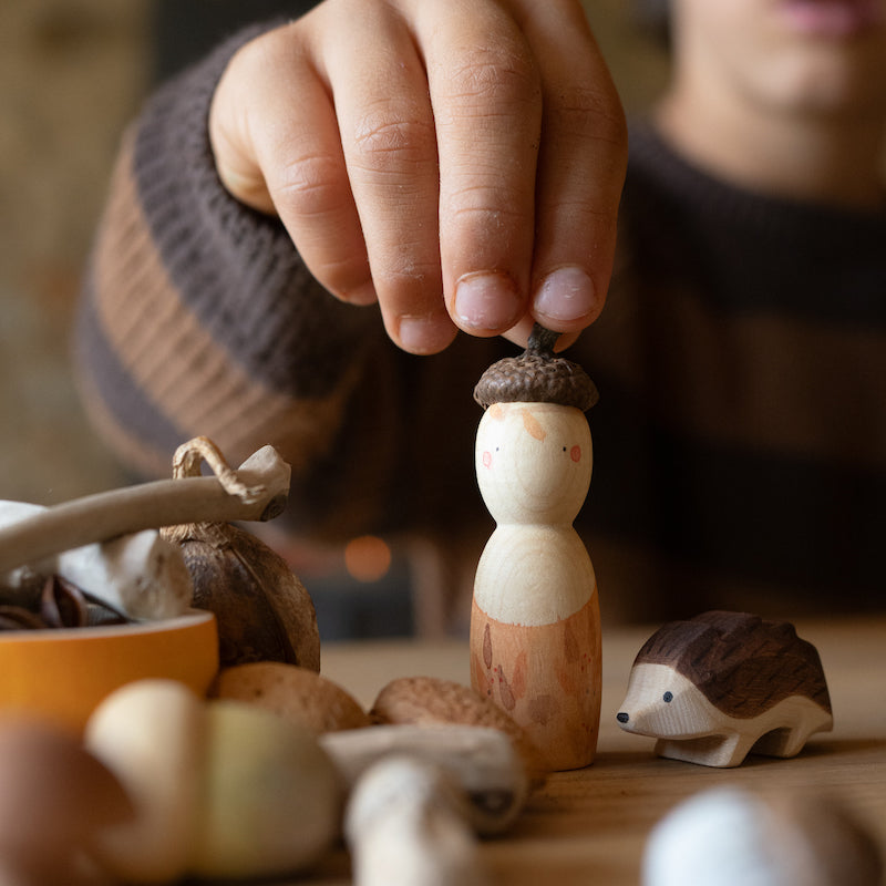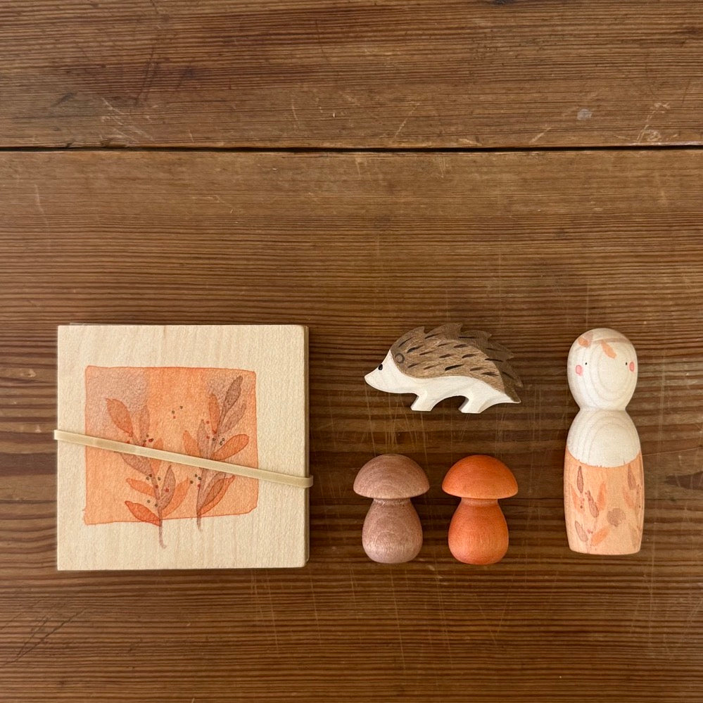 • Inhalt: 5 thematisch zum Herbst passende kleine Holzspielzeuge: 1 Igel-Holzfigur, 1 Nin®-Holzfigur, 2 Holzpilze, 1 Blumenpresse.