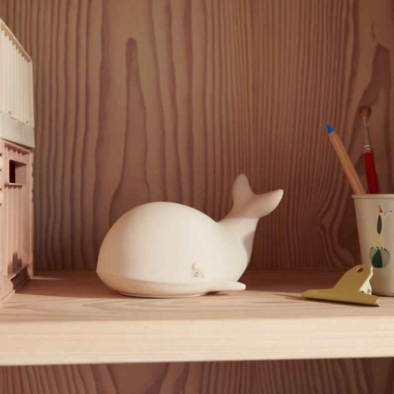 Das Nachtlicht Winston (Modell: Whale, Sandy) des dänischen Labels LIEWOOD bringt angenehmes Licht ins Kinderzimmer! Das Nachtlicht ist in Form eines Wales geformt und kann via Touch-Funktion an- und ausgeschaltet werden.