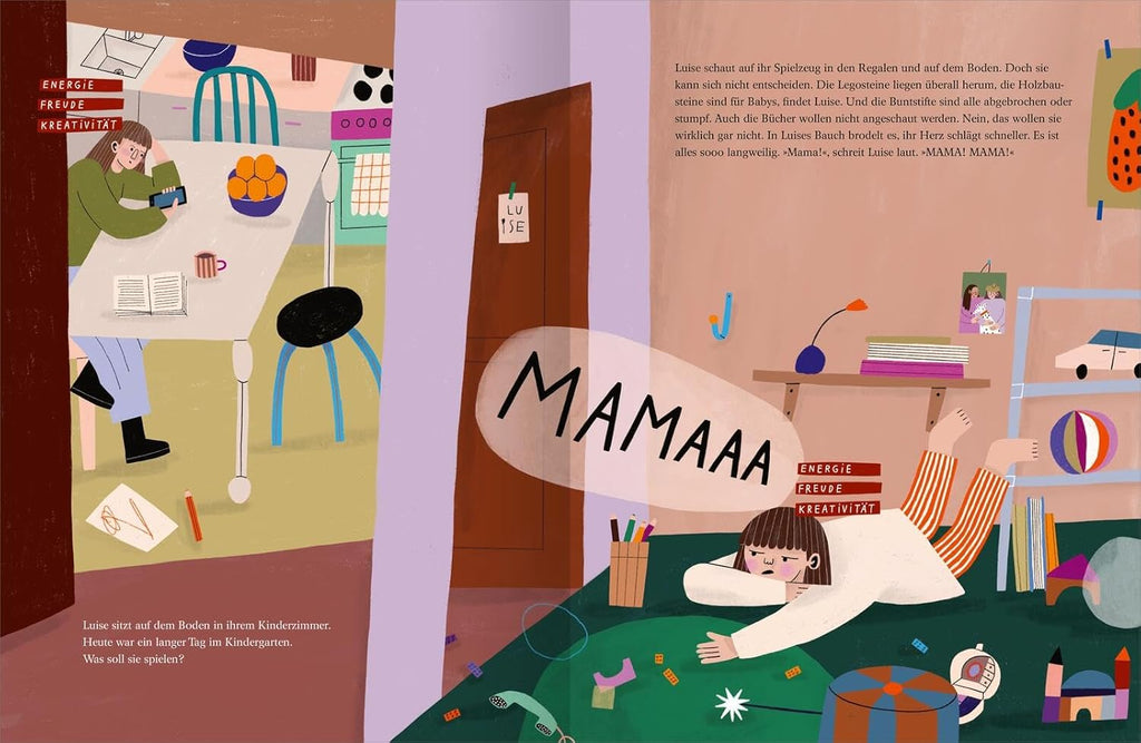 Manchmal ist einfach alles zu viel – für Kinder genauso wie für ihre Eltern. „Luise braucht ’ne Pause” zeigt kindgerecht und einfühlsam, wie wichtig es ist, rechtzeitig Pausen zu machen und den eigenen Akku wieder aufzuladen. Die Geschichte rund um Luise und ihre Mama ermutigt Kinder ab 4 Jahren, achtsam mit sich selbst umzugehen und kreative Wege zu finden, um Überforderung und Überreizung zu begegnen.