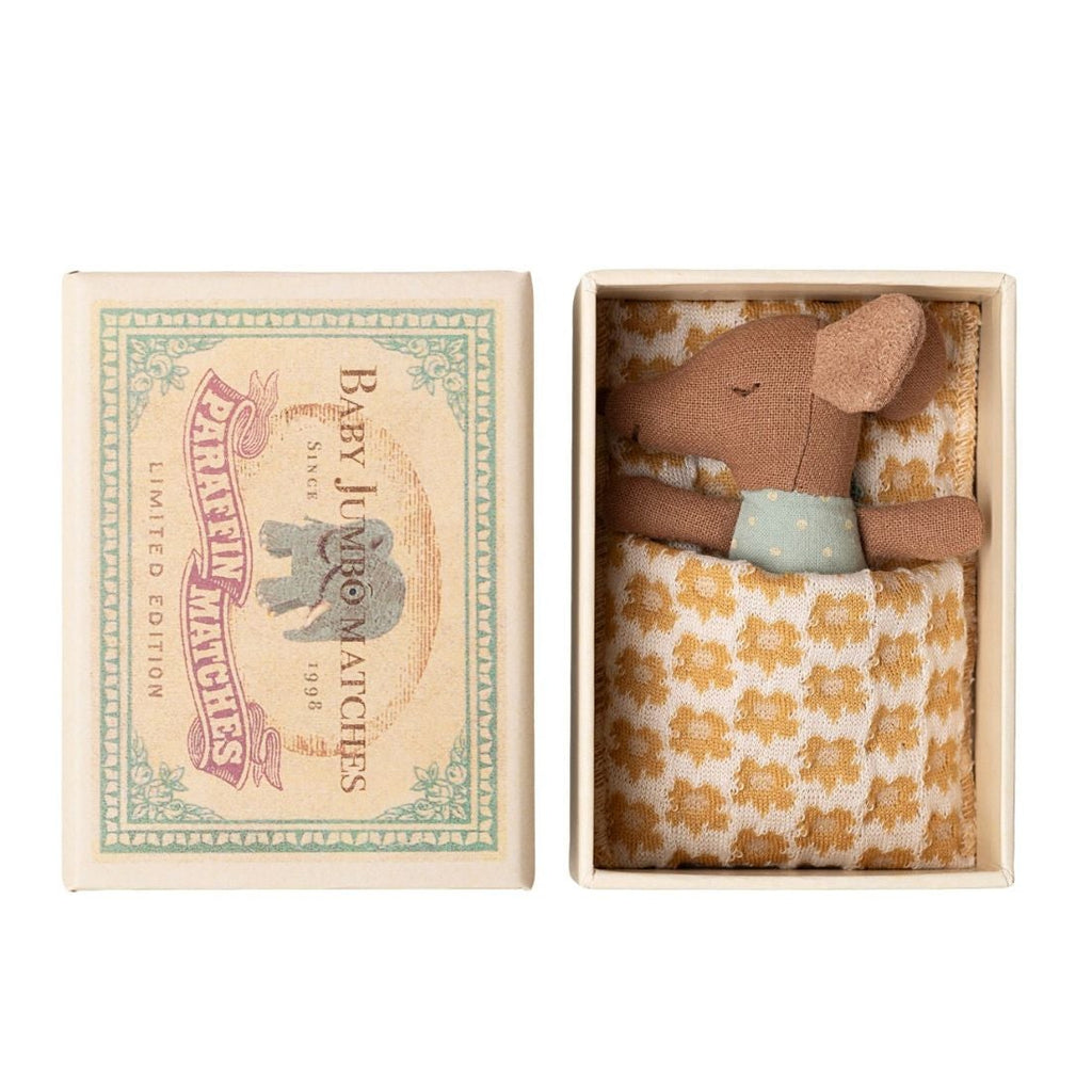 Maileg | Schläfrige Babymaus in Streichholzschachtel (Blau)