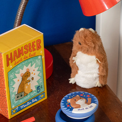 Der süße Milchzahn-Hamster der Puce & Pilou Kollektion von MOULIN ROTY ist der perfekte Hüter der Milchzähne: Der kleine süße Hamster wartet geduldig in seiner hübsch illustrierten Schachtel darauf, dass die ersten Milchzähne ausfallen, um sie sicher in seiner kleinen Tasche aufzubewahren.
