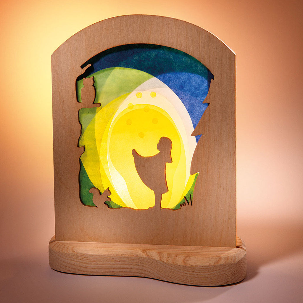 Dieses wunderschöne handgefertigte Transparent "Sterntaler" (Artikelnummer: 5520012) stammt aus der Holzspielzeug-Manufaktur OSTHEIMER. Mit diesem stimmungsvollen Transparent wird eine schöne Atmosphäre geschaffen und das Märchen um das Waisenmädchen bildhaft erlebbar. Zu sehen ist das Mädchen, das die Sterne auffängt.