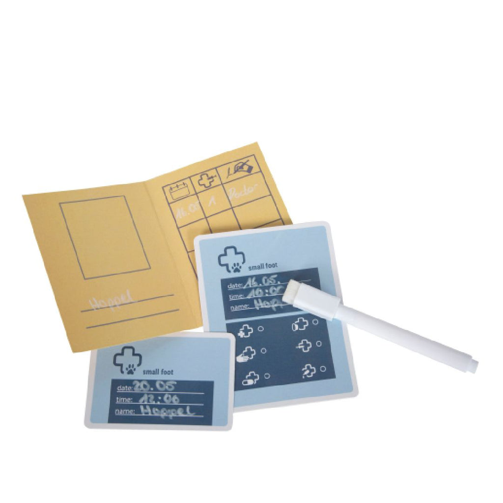 • Halskrause, Karotte, Impfpass, Terminkarte, Patientenkarten (beschriftbar mit beiliegendem Folienstift)