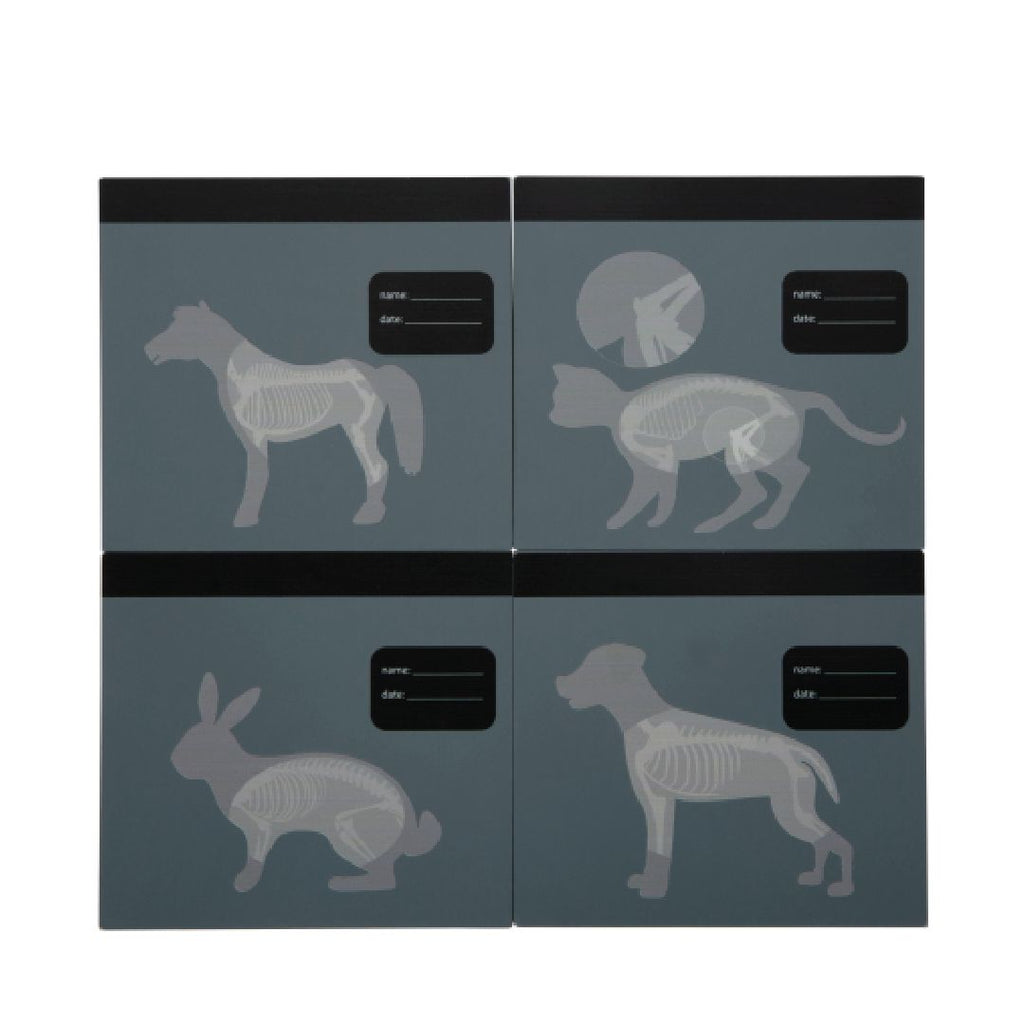 • 4 doppelseitig bedruckte Röntgenbilder von Hund, Katze, Hase und Pferd